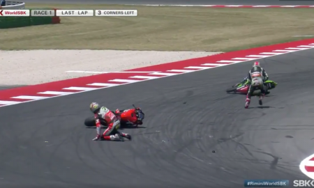 Screencap via WorldSBK on Twitter The FIM Superbike World Championship race was in its final corners Saturday when leader Chaz Davies wrecked...