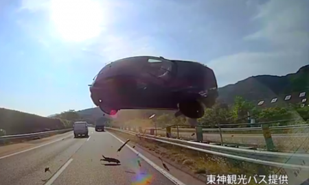 Photo: Kyodo News Plus/YouTube (screengrab) A doctor driving what looks like a Mazda hatchback in Japan somehow launched his car over a...
