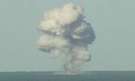 The mushroom cloud from a MOAB detonated in a United States Air Force test. Photo credit: Getty Images The Massive Ordnance Air...