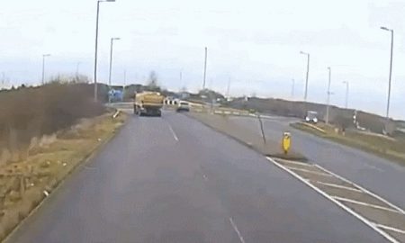 GIF A mother was more than three-times the legal limit when she drunkenly launched her crossover 14 feet high over a roundabout...