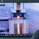 A man watches a TV news program from South Korea showing an image of a high-thrust rocket engine in North Korea on...