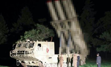 Kim Jong un inspecting the tracked multiple rocket launcher vehicle. Pixelation courtesy North Korea, which apparently prefers to keep the U.S. guessing...