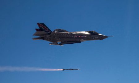 An early F-35A model undergoing testing in 2013, featuring the original major program partners’ flags on its side.Photo: U.S. Air Force Foxtrot...