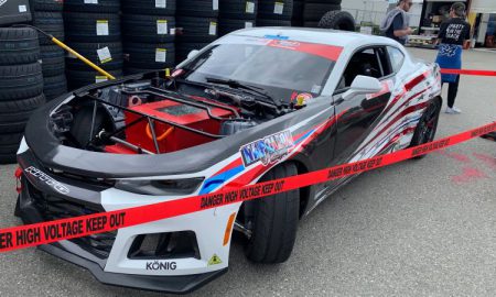 Photo: Bradley Brownell There is a ridiculously awesome electric Camaro drift car in Long Beach this weekend for the season opening round...