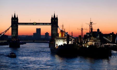 The RMS St. Helena, Extreme E’s travel ship, docked in London for the series’ launch event. Photo: Luke Walker (Getty Images for...