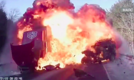 Screenshot: Boston 25 News An 18-year-old college student driving a Jeep Wrangler TJ miraculously survived a crash with a semi truck—a collision...