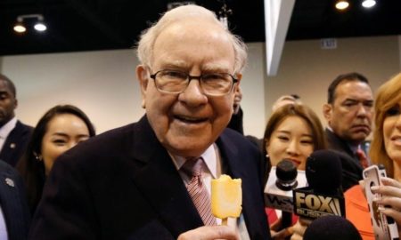 Berkshire Hathaway chairman and CEO Warren Buffett enjoys an ice cream treat from Dairy Queen before the Berkshire’s annual meeting in Omaha...