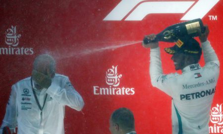 Mercedes’ Lewis Hamilton on the podium with the head of Mercedes-Benz, Dieter Zetsche, after winning the German Grand Prix. Reuters/Wolfgang Rattay Here...