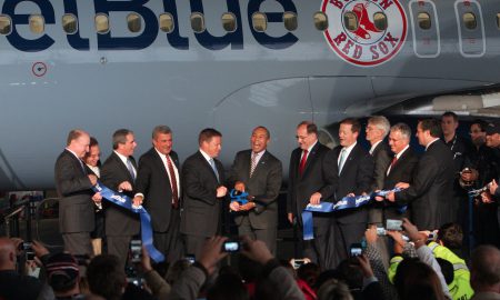 A ribbon cutting ceremony to celebrate JetBlue Airways move to historic Hangar 8 at Logan International Airport in BostonAP/Aynsley Floyd When it...