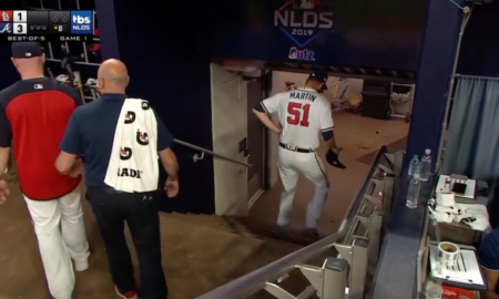 Before he got a chance to throw his first pitch of the postseason, Chris Martin of the Atlanta Braves was taken off...