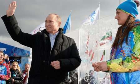 Russian President Vladimir Putin visits the Coastal Cluster Olympic Village ahead of the Sochi 2014 Winter Olympics on February 5, 2014 in...