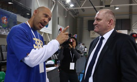 LaVar Ball speaks with Virginijus Seskus, head coach of Vytautas Prienai.Alius Koroliovas/Getty Images LaVar Ball was back to coaching his sons on...