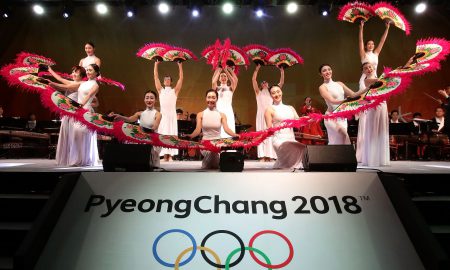 South Koreans perform on stage during the Pyeongchang 2018 Winter Olympic Games torch relay on November 4, 2017 in Busan, South Korea.Photo...