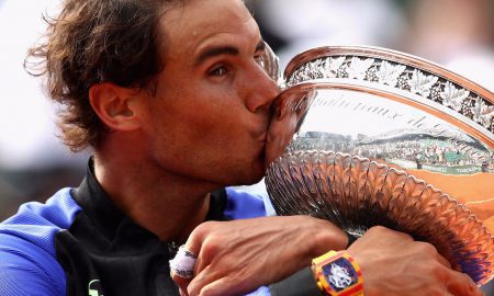 Rafael Nadal of Spain celebrates victory at the French Open on June 11, 2017 while wearing his Richard Mille RM27-02.Julian Finney/Getty Images...