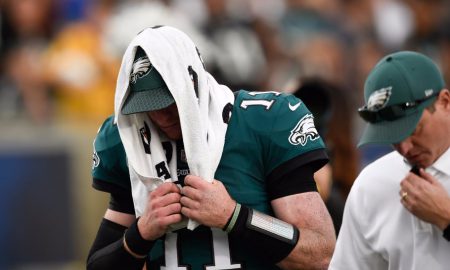 AP Photo/Kelvin Kuo Philadelphia Eagles quarterback Carson Wentz went down with a left knee injury during a game against the Los Angeles...