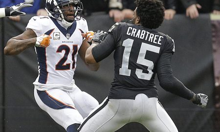 Ben Margot/AP Michael Crabtree and Aqib Talib were ejected at the start of Sunday’s game between the Raiders and Broncos after trading...
