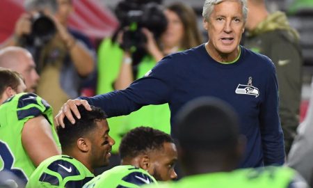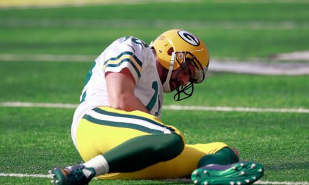 Norm Hall/Getty Images Russell Wilson took a shot to the jaw during “Thursday Night Football” and was sent to the sidelines by...