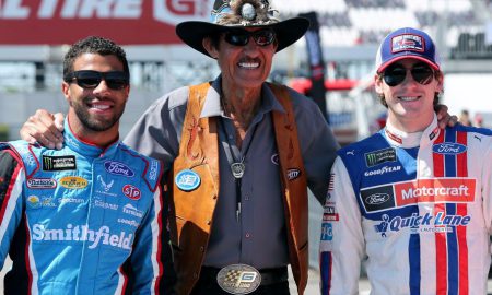 Richard Petty (center) stands with Ryan Blaney (right) and Bubba Wallace, NASCAR’s first black driver in over a decade.Jerry Markland/Getty Images After...