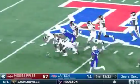 @HailStateFB/Twitter Louisiana Tech had a tough Saturday. Down 57-14 to Mississippi State in the fourth quarter, the Bulldogs were in the red...