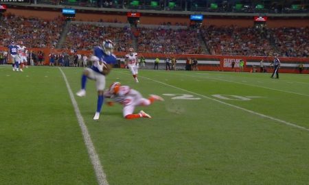 Odell Beckham Jr injured on this hit against the Cleveland Browns.ESPN Odell Beckham Jr. may have narrowly avoided a serious leg injury...