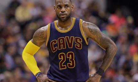 LeBron James talked to the media after graffiti of a racial slur was found on LeBron James’ home, a day before the...