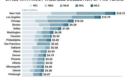 More Charts When it comes to the city with the most valuable sports franchises, nobody beats New York and only Los Angeles...