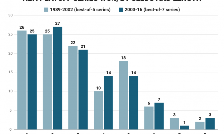 More Charts Prior to the 2002-03 season, the NBA changed the format of the playoffs, with the first round switching from a...