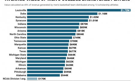 More Charts The average college basketball player at the University of Louisville would be worth $1.7 million per year if they were...