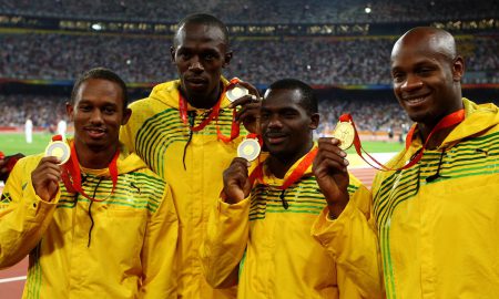 The 2008 4x100m gold medalists. Carter is second from the right.Julian Finney/Getty Make that eight gold medals for Jamaican sprinter Usain Bolt....