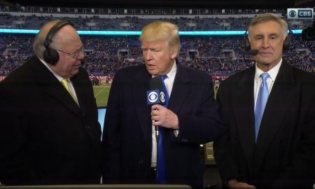 CBS President-elect Donald Trump made an appearance at the annual Army-Navy game on Saturday and stopped by the booth to visit with...