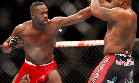 Light heavyweight champion Jon Jones punches at Daniel Comier during the UFC 182 event at the MGM Grand Garden Arena on January...
