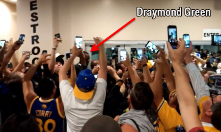 Twitter/DeMarcusRFNET Draymond Green is suspended for Game 5 of the NBA Finals, but he is not missing the action. Green is watching...