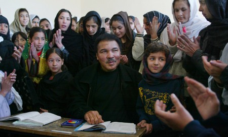 Paula Bronstein/UNICEF/Getty ImagesFormer world heavyweight boxing champion Muhammad Ali, center, sits with Afghan students during his visit to Karte Sei High school...