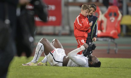 APDinamo Bucharest’s Harlem Gnohere cries after his teammate Patrick Ekeng of Cameroon collapsed and died on the field. Cameroonian Patrick Ekeng died...