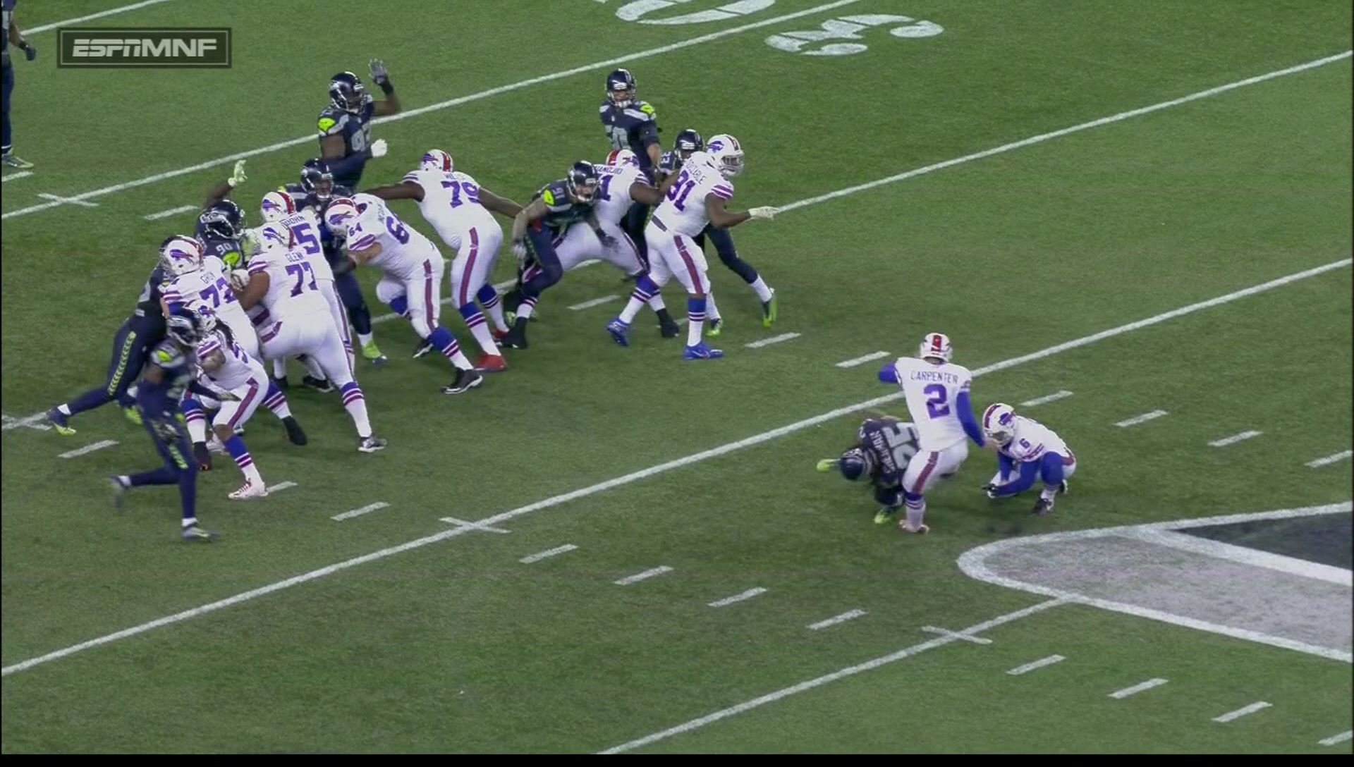 The Buffalo Bills missed a chance at a field goal in the closing seconds of the first half of the “Monday Night Football” game against the Seattle Seahawks when a late hit by Richard Sherman actually helped his own team and cost the Bills a huge opportunity.