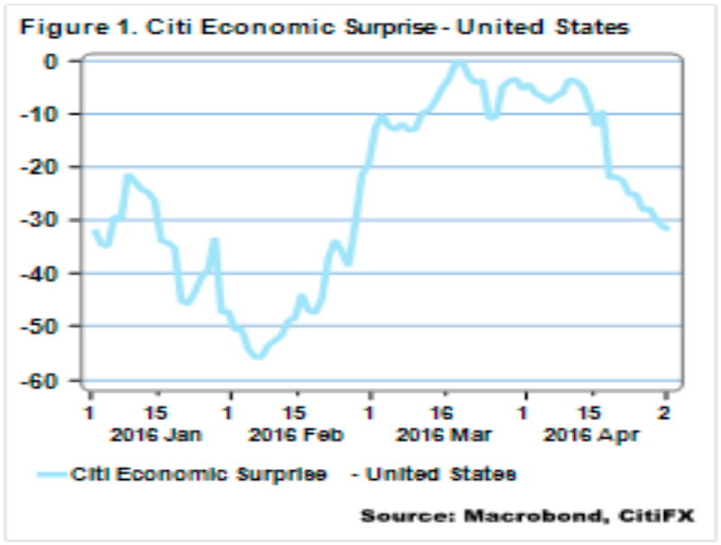 In a note to clients Wednesday, Englander concedes “US economic data have been soggy, other than labor market data, which means that we get one positive data release a month followed by a series of disappointments.” He points to the Citi economic surprise index as evidence of the deterioration.