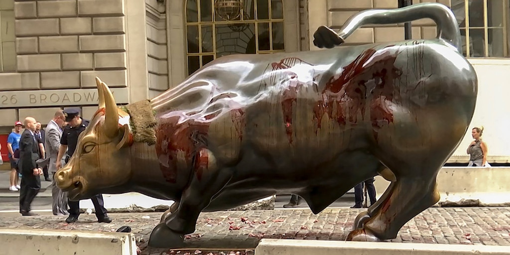 The bull, a symbol for capitalism and healthy financial markets, was installed by artist Arturo Di Modica in 1989 and has since been the site of several protests and acts of vandalism. A man was charged with criminal mischief after damaging the statue with a banjo in early September.