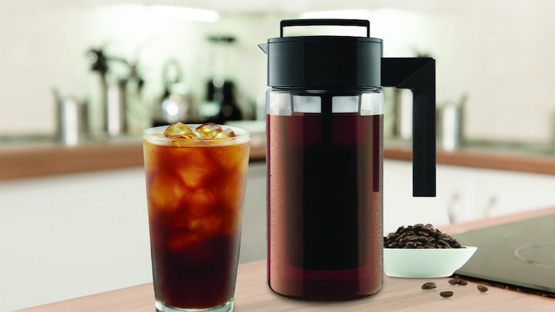 This non-coffee drinker bought one of these last year, and I’m absolutely in love with it. All you have to do is fill the basket with ground coffee, fill the container with water, and let it steep overnight in the fridge. The resulting coffee concentrate needs to be watered down, so one batch should last you several days.