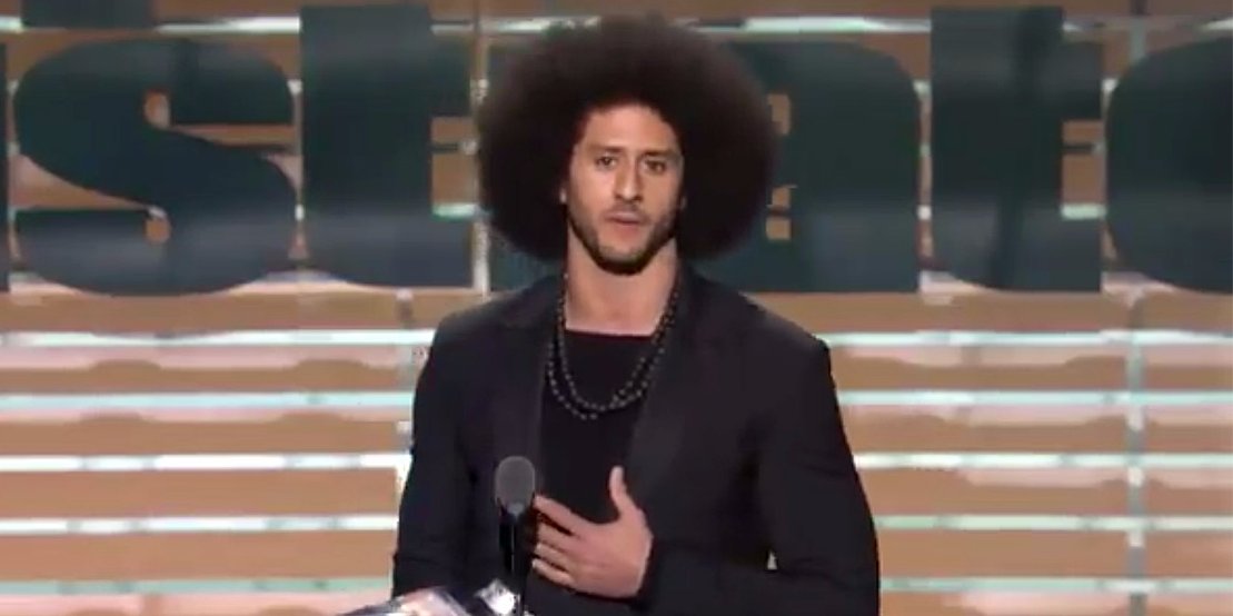 “I accept this award not for myself but on behalf of the people,” Kaepernick said. “Because if it were not for my love of the people, I would not have protested. And if it was not for the support from the people, I would not be on this stage today.”