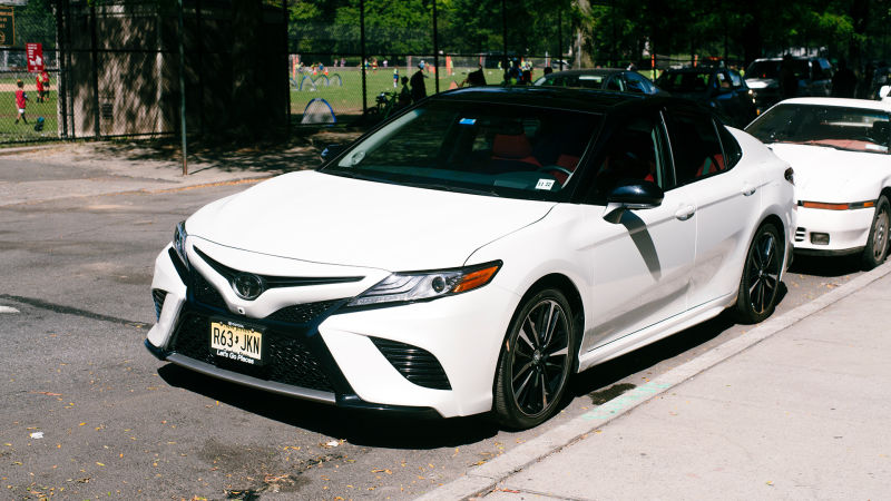 Today Toyota lent us a brand-new Camry, and being a press car, it was spec’d out to be basically the top of the line. That means a black roof over the white body and (along with a 301-horsepower V6 and a $38,xxx price tag) a red leather interior. We are a long way from all-silver Camrys with nothing but cloth interiors, working like family haulers. Crossovers do that now.