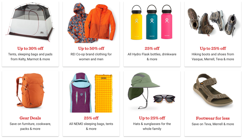The biggest discounts are generally going to be on REI’s own products, including the Passage 2 backpacking tent and the REI Camp Roll table, in addition to a ton of apparel.