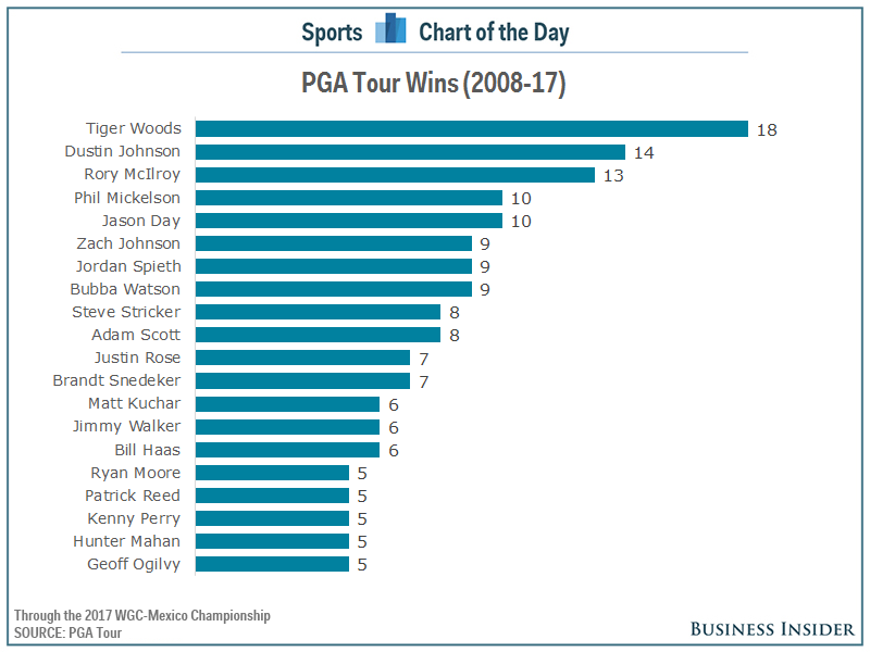 In fact, the win in Mexico City was the 14th in Johnson’s career. How impressive is that? Since the start of the 2008 season, only Tiger Woods has more victories, 18, than D.J.. Then again, Tiger hasn’t won an event since 2013, so maybe it says just as much about how great he used to be.