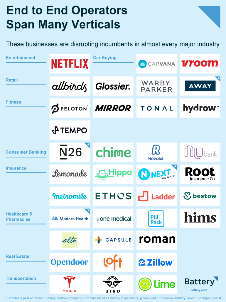In these instances, starting from the ground up is what is really required to deliver an optimal consumer experience. Back in 2014, Chris Dixon wrote a bit about this phenomenon in his post on “Full stack startups.” Fast forward several years, and more startups than ever are “full stack” or as we call it, “end-to-end operators.”