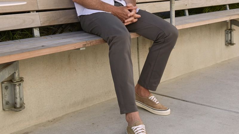 Rather than loud, crinkly, weirdly shiny athletic fabric with a baggy fit, the slim and modern looking Performance Chinos are made from a simple blend of 94% cotton, plus 6% elastane to provide a little bit of stretch, just like the company’s terrific jeans. The fabric is on the thin side to allow for greater breathability and sweat wicking, so they might not be the first pants you reach for during the cold months of the year, but they don’t look cheap. Or like athletic pants. They look like chinos, but they feel like something you could run a few miles in if you needed to.