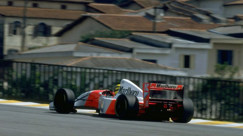 Ayrton Senna in the 1993 Brazilian Grand Prix at Interlagos.