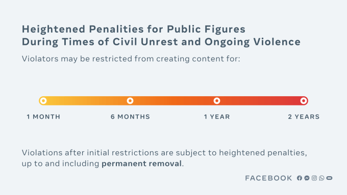 This highly specific “enforcement protocol” is sort of like a visual representation of Facebook saying “we take this very seriously.” While it gives the impression of some kind of sentencing guidelines by which public figures will systematically be given an appropriate ban length, every aspect of the process is arbitrarily decided by Facebook.