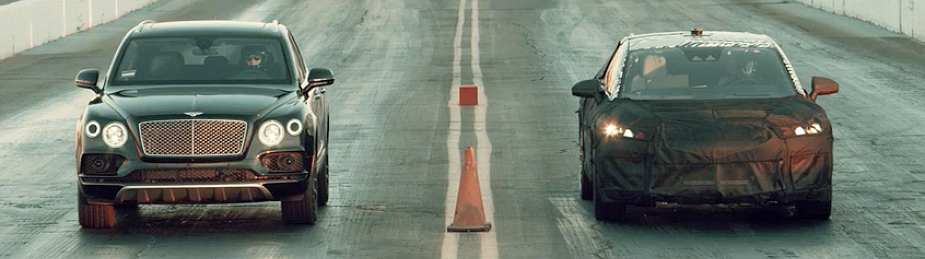A Bentley Bentayga SUV and a Faraday Future vehicle line up for a race.Screenshot via YouTube