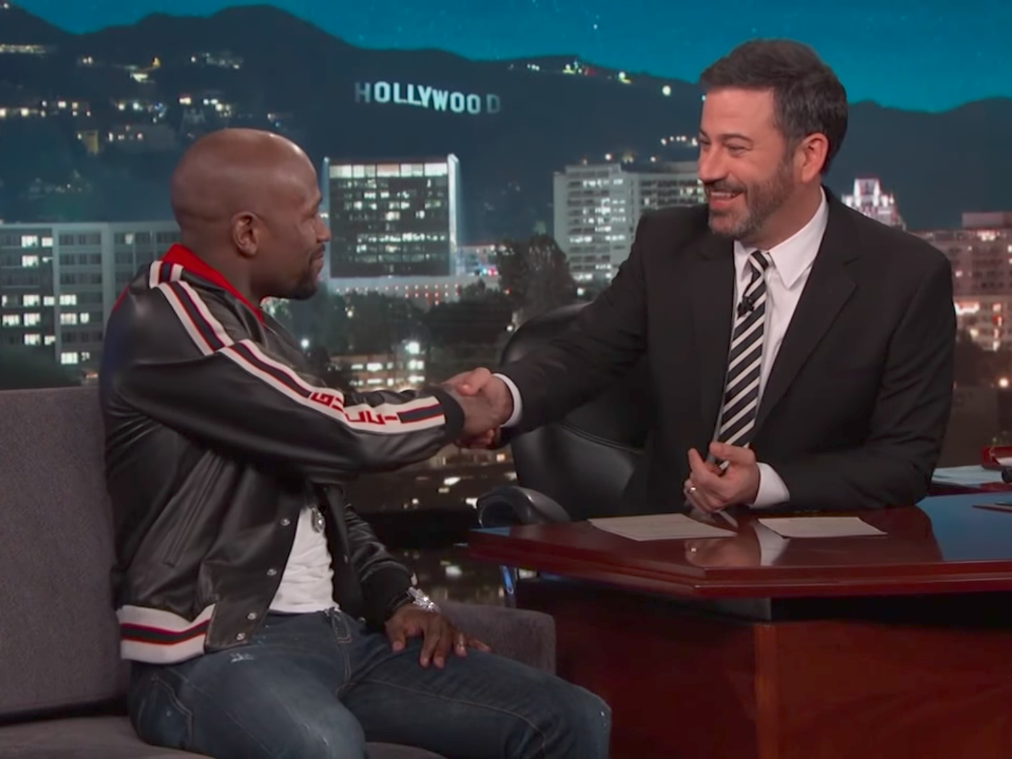 Kimmel then went on to try and get some advice on prop bets for the fight, asking Floyd if he believed he would knock out McGregor, which he refused to answer, or if he believed there was any chance the fight would go the distance, to which Floyd replied, “Absolutely not.” Mayweather was also hesitant to say whether or not Justin Bieber would once again accompany him to the ring.