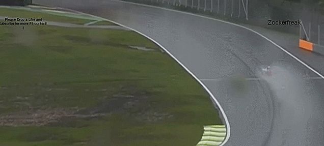 Grosjean went off at Turn 14 at Interlagos on the reconnaissance lap. His car slid into the wall after hitting water that was streaming down a hill on the circuit.