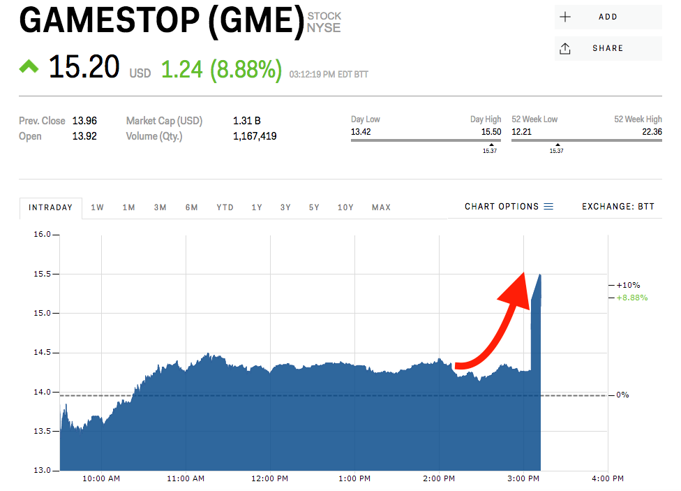 • The wire service reported that GameStop had hired a financial advisor to assist in discussions with private equity firms including Sycamore.
